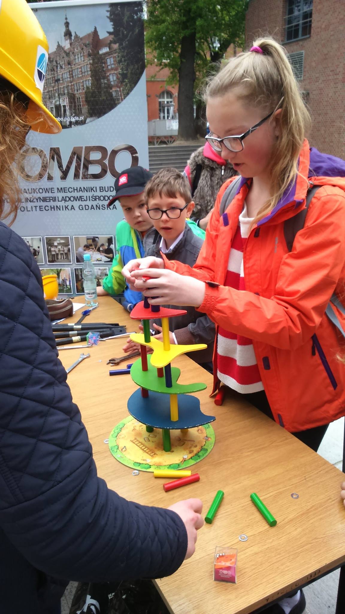 Z okazji Bałtyckiego Festiwalu Nauki członkowie Koła Naukowego Mechaniki Budowli KoMBo dowodzeni przez Michała Gołębiewskiego przystąpili w piątek 27 maja do budowy wieży tensegrity. Pomimo początkowych trudności udało się wznieść blisko